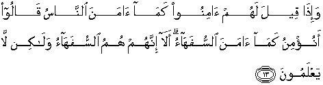 13. Apabila dikatakan kepada mereka: "Berimanlah kamu sebagaimana