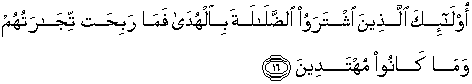 16. Mereka itulah orang yang membeli kesesatan dengan petunjuk, maka tidaklah beruntung perniagaan mereka dan tidaklah mereka mendapat petunjuk.