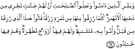 25. Dan sampaikanlah berita gembira kepada mereka yang beriman dan
