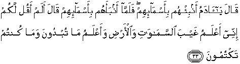33. Allah berfirman: "Hai Adam, beritahukanlah kepada mereka