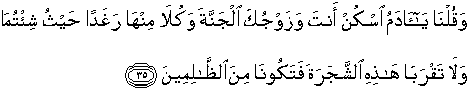 35. Dan Kami berfirman: "Hai Adam, diamilah oleh kamu dan isterimu