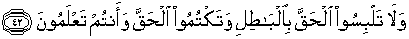 42. Dan janganlah kamu campur adukkan yang hak dengan yang bathil dan