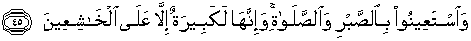 45. Jadikanlah sabar dan shalat sebagai penolongmu. Dan sesungguhnya yang demikian itu sungguh berat, kecuali bagi orang-orang yang khusyu',
