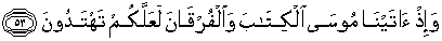 53. Dan (ingatlah), ketika Kami berikan kepada Musa Al Kitab (Taurat) dan keterangan yang membedakan antara yang benar dan yang salah, agar kamu mendapat petunjuk.