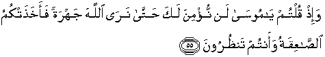 55. Dan (ingatlah), ketika kamu berkata: "Hai Musa, kami tidak akan