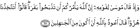 67. Dan (ingatlah), ketika Musa berkata kepada kaumnya: