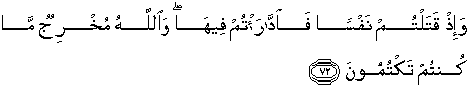 72. Dan (ingatlah), ketika kamu membunuh seorang manusia lalu kamu saling tuduh menuduh tentang itu. Dan Allah hendak menyingkapkan apa yang selama ini kamu sembunyikan.