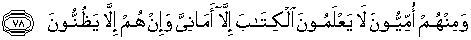 78. Dan diantara mereka ada yang buta huruf, tidak mengetahui Al Kitab (Taurat), kecuali dongengan bohong belaka dan mereka hanya menduga-duga