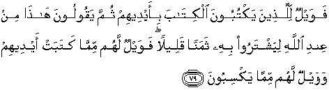Dalam suatu riwayat dikemukakan bahwa ayat ini (S. 2: 79) turun tentang ahli kitab yang