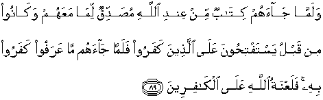 ini (S. 2: 89) sebagai laknat kepada orang-orang yang memohon pertolongan Allah, yang setelah