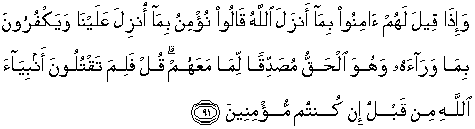 91. Dan apabila dikatakan kepada mereka: "Berimanlah kepada Al Quran