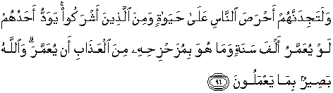 96. Dan sungguh kamu akan mendapati mereka, manusia yang paling loba