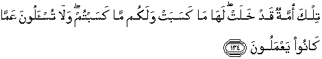 134. Itu adalah umat yang lalu; baginya apa yang telah diusahakannya dan bagimu apa yang sudah kamu usahakan, dan kamu tidak akan diminta pertanggungan jawab tentang apa yang telah mereka kerjakan.