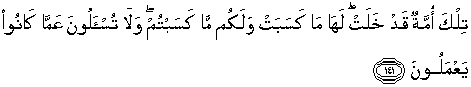 141. Itu adalah umat yang telah lalu; baginya apa yang diusahakannya dan bagimu apa yang kamu usahakan; dan kamu tidak akan diminta pertanggungan jawab tentang apa yang telah mereka kerjakan.