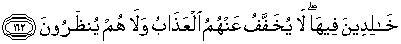 162. Mereka kekal di dalam la'nat itu; tidak akan diringankan siksa dari mereka dan tidak (pula) mereka diberi tangguh.