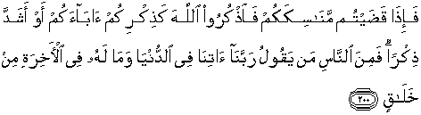 (S. 2: 200) sampai: asyadda dzikira, sebagai petunjuk apa yang harus dilakukan di saat Wuquf.