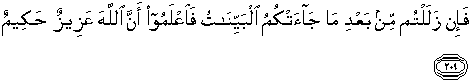 209. Tetapi jika kamu menyimpang (dari jalan Allah) sesudah datang kepadamu bukti-bukti kebenaran, maka ketahuilah, bahwasanya Allah Maha Perkasa lagi Maha Bijaksana.