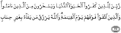212. Kehidupan dunia dijadikan indah dalam pandangan orang-orang