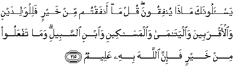 215. Mereka bertanya tentang apa yang mereka nafkahkan. Jawablah: