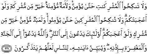 221. Dan janganlah kamu menikahi wanita-wanita musyrik, sebelum