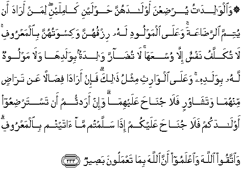 233. Para ibu hendaklah menyusukan anak-anaknya selama dua tahun