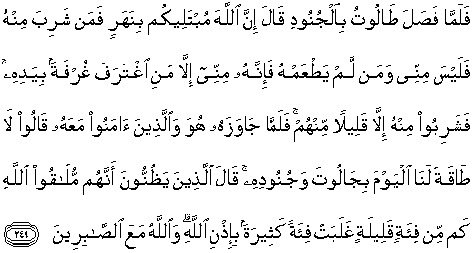 249. Maka tatkala Thalut keluar membawa tentaranya, ia berkata: