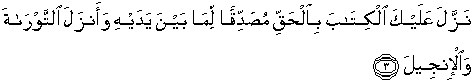 3. Dia menurunkan Al Kitab (Al Quran) kepadamu dengan sebenarnya; membenarkan kitab yang telah diturunkan sebelumnya dan menurunkan Taurat dan Injil,