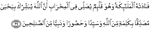 39. Kemudian Malaikat (Jibril) memanggil Zakariya, sedang ia