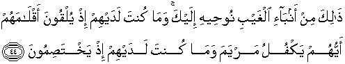 yang akan memelihara Maryam. Dan kamu tidak hadir di sisi
