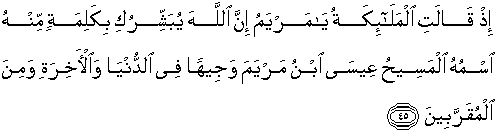 45. (Ingatlah), ketika Malaikat berkata: "Hai Maryam, seungguhnya