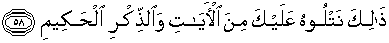 58. Demikianlah (kisah 'Isa), Kami membacakannya kepada kamu sebagian dari bukti-bukti (kerasulannya) dan (membacakan) Al Quran yang penuh hikmah.
