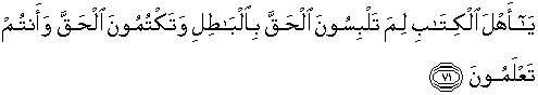 71. Hai Ahli Kitab, mengapa kamu mencampur adukkan yang haq dengan