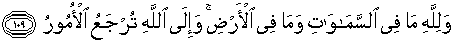 109. Kepunyaan Allah-lah segala yang ada di langit dan di bumi; dan kepada Allahlah dikembalikan segala urusan.