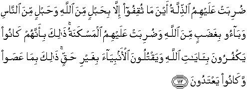 112. Mereka diliputi kehinaan di mana saja mereka berada, kecuali