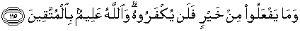 115. Dan apa saja kebajikan yang mereka kerjakan, maka sekali-kali mereka tidak dihalangi (menenerima pahala) nya; dan Allah Maha Mengetahui orang-orang yang bertakwa.