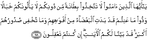 118. Hai orang-orang yang beriman, janganlah kamu ambil menjadi