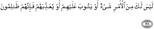 128. Tak ada sedikitpun campur tanganmu dalam urusan mereka itu[227] atau Allah menerima taubat mereka, atau mengazab mereka