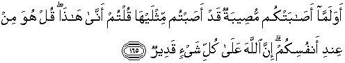 "Darimana datangnya (kekalahan) ini?" Katakanlah: "Itu dari
