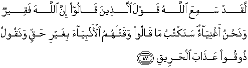 181. Sesungguhnya Allah telah mendengar perkatan orang-orang yang