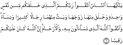 1. Hai sekalian manusia, bertakwalah kepada Tuhan-mu yang telah