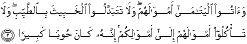 2. Dan berikanlah kepada anak-anak yatim (yang sudah balig) harta