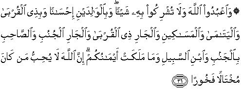 36. Sembahlah Allah dan janganlah kamu mempersekutukan-Nya dengan