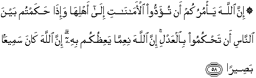 58. Sesungguhnya Allah menyuruh kamu menyampaikan amanat kepada yang