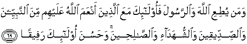 69. Dan barangsiapa yang mentaati Allah dan Rasul(Nya), mereka itu