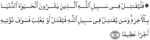74. Karena itu hendaklah orang-orang yang menukar kehidupan dunia