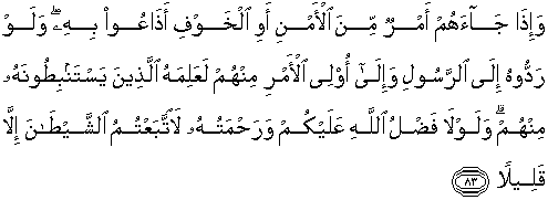 83. Dan apabila datang kepada mereka suatu berita tentang keamanan