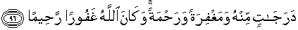 96. (yaitu) beberapa derajat dari pada-Nya, ampunan serta rahmat. Dan adalah Allah Maha Pengampun lagi Maha Penyayang.