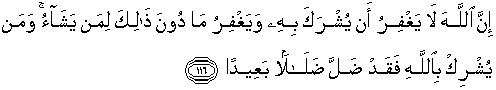 116. Sesungguhnya Allah tidak mengampuni dosa mempersekutukan (sesuatu)