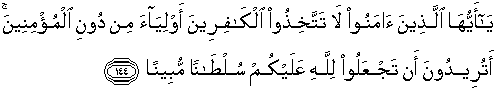 144. Hai orang-orang yang beriman, janganlah kamu mengambil orang-orang