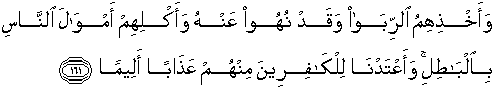 161. dan disebabkan mereka memakan riba, padahal sesungguhnya mereka